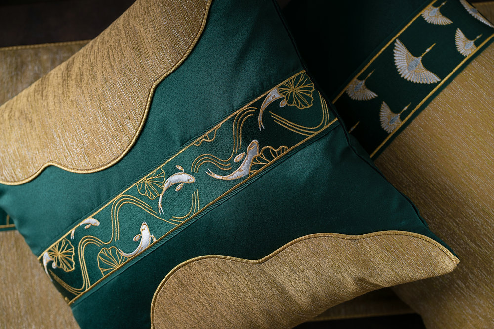 荷花、錦鯉、祥云、流水,鎏金閣系列將傳統(tǒng)元素與摩登時尚的新設(shè)計相融合,以席紋底帶呈現(xiàn)華貴光感,展示新中式的時尚與富麗堂皇。